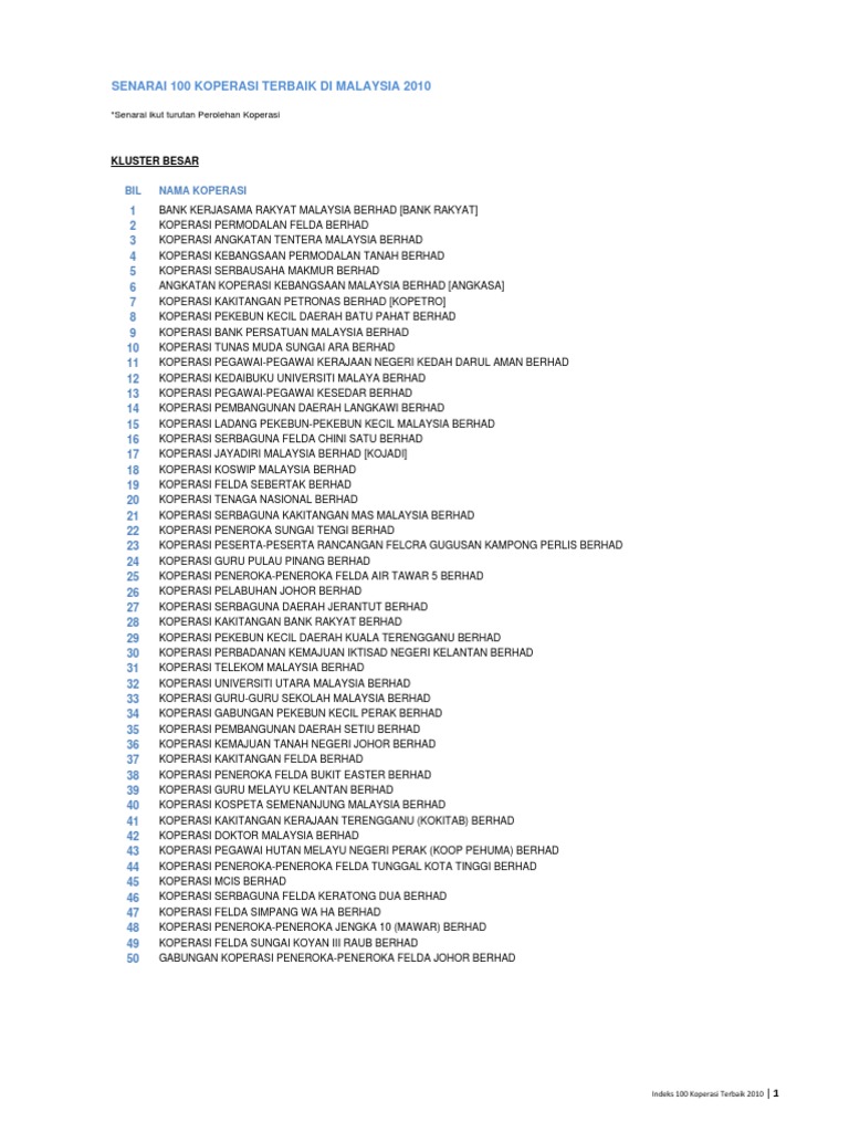 Senarai Koperasi 2010 from imgv2-2-f.scribdassets.com Angkatan belia islam malaysia (abim). Mungkin ramai tidak sedar bahawa haiwan di negara kita diancam masalah kepupusan serius. Senarai menteri kabinet baru malaysia 2021. Klik bendara negeri di bawah untuk senarai pbt negeri tersebut. Menteri pembangunan usahawan dan koperasi. Senarai menteri kabinet malaysia adalah: Yb dato' seri mohamed azmin ali. Deutsche bank (malaysia) berhad adalah anak syarikat deutsche bank aktiengesellschaft.